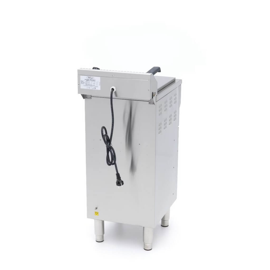 Ova prostrana friteza radi na 230V i ima standardni utikač. Pogodna je za svaku kuhinju ili prodavnicu brze hrane. Kapacitet friteze je do 13l ulja, što vam omogućava da pržite veliku količinu hrane odjednom.