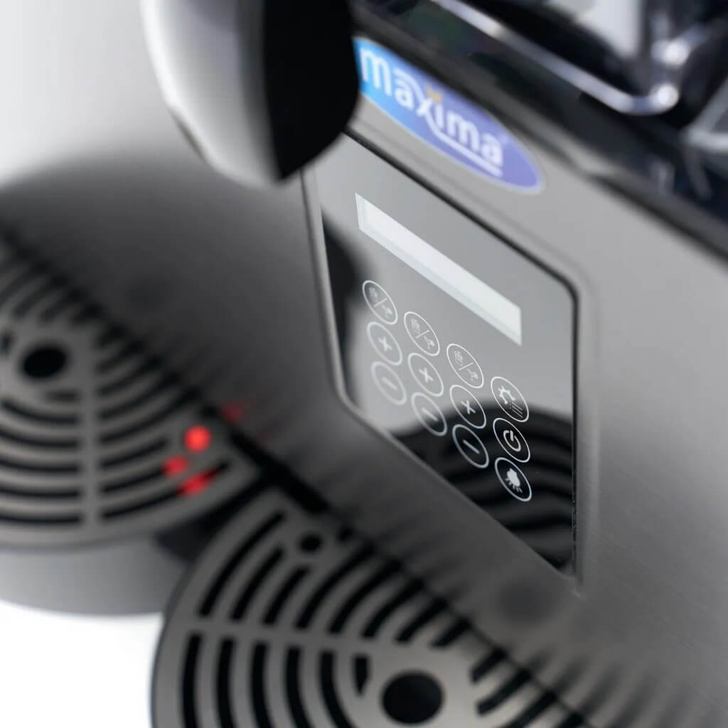 Uz pomoć tri digitalna displeja, po jedan po rezervoaru, možete odabrati pravi režim za svako piće: „ICE“ (za slush), „COOL“ (za ohlađena pića), „CLN“ (za čišćenje) ili „STOP“. Dugme „Gear“ vam omogućava da podesite željenu gustinu ili temperaturu u čak 7 nivoa. „ICE“ režim radi između -12°C i -2°C, a „COOL“ između 1°C i 10°C. Automatski režim regeneracije obezbeđuje konzistentne performanse na nižim temperaturama. Displej se zaključava nakon 1 minuta i može se ponovo aktivirati pritiskom na dugme za svetlo, u trajanju od tri sekunde.