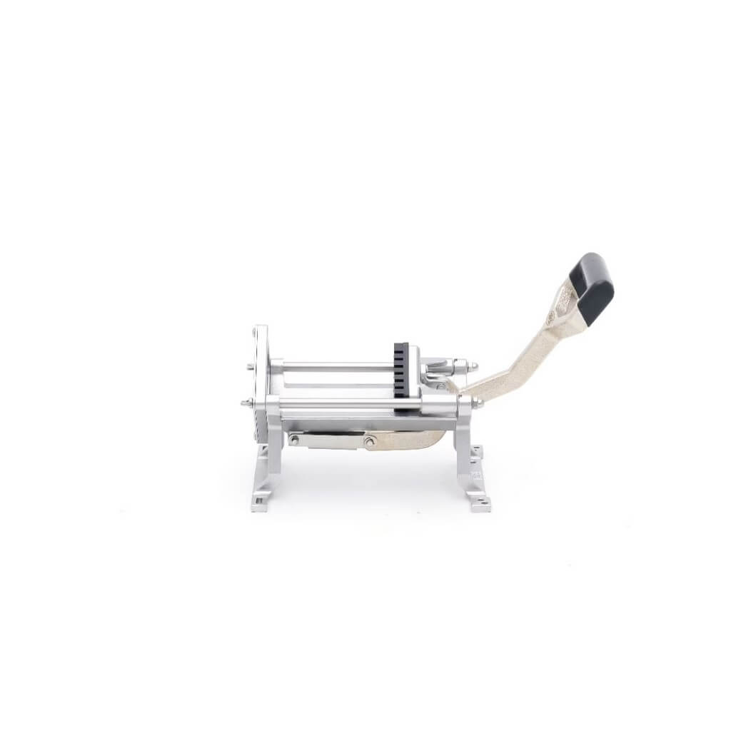 Zahvaljujući svojim oštrim sečivima i čvrstoj polugozi, ova horizontalna seckalica za pomfrit olakšava pripremu velikih količina za kratko vreme. Bez obzira da li sečete pomfrit, šargarepu, tikvice ili krastavce, robustan dizajn garantuje precizne, ravnomerne rezultate, idealne za konzistentno kuvanje i prezentaciju.