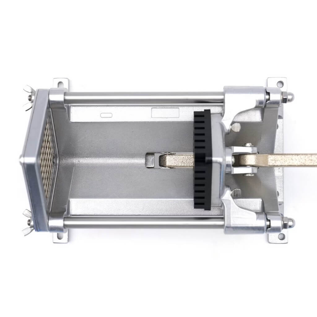 Napravljen od visokokvalitetnog nerđajućeg čelika i ojačanog aluminijuma, ovaj sekač je napravljen da traje. Glatki mehanizam poluge pruža snažno sečenje bez potrebe za velikom silom, što ga čini pouzdanim izborom za prometne kuhinje gde je brzina važna. Za dodatnu stabilnost, uređaj se može montirati na radnu ploču ili zid. Ovu seckalicu možete produžiti i klinastim sečivom. Standardna sečiva se lako mogu zameniti klinastim sečivom za još veću svestranost.