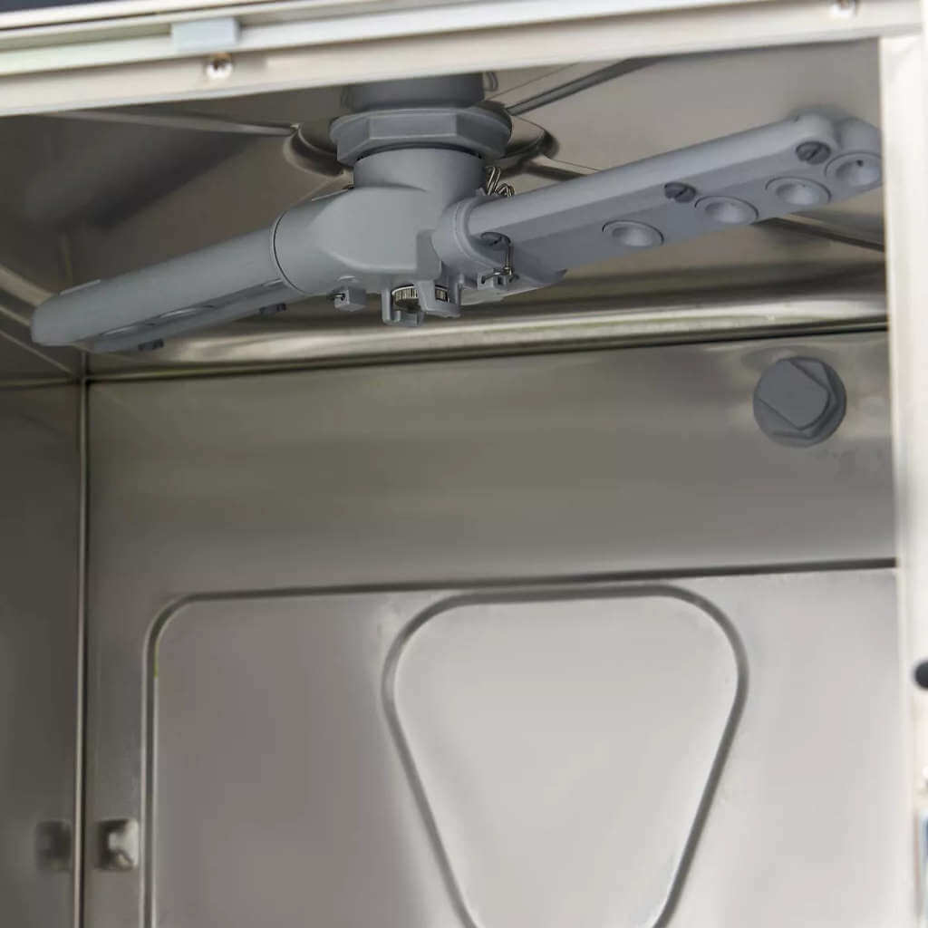 Ova vrhunska mašina za pranje sudova je napravljena od nerđajućeg čelika, a mlaznice i filter za prljavštinu su napravljeni od ABS-a, tako da se svi delovi lako čiste. Možete koristiti razne vrste deterdženta, kao što su prašak, tablete, kesice i sredstvo za ispiranje. Uključeni dodaci su: dve korpe za stakleno posuđe 40x40cm, umetak za pribor za jelo, umetak za tanjire i crevo za dovod i odvod. Ovaj model se isporučuje sa pumpom za ispiranje, ali bez pumpe za sapun i pumpe za odvod vode.
