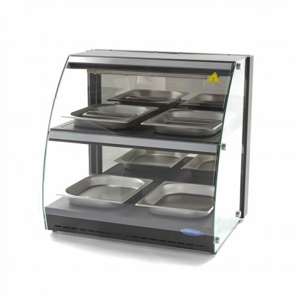 Maxima stona, izložbena topla vitrina na 2 nivoa je uređaj sa zatvorenom prednjom stranom, izrađen od nerđajućeg čelika i pogodan za profesionalnu upotrebu. Poseduje digitalnu kontrolu temperature i stoji na gumenim nogicama radi stabilnosti.