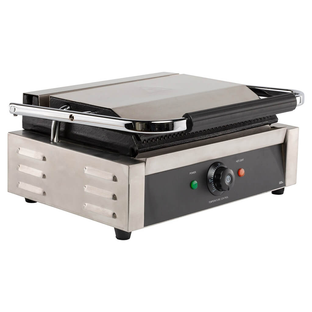 Kontaktni toster je idealno rešenje za svakoga ko želi da pripremi savršeno pečena jela, bez obzira da li vodite ugostiteljski posao, posedujete štand sa hranom ili pružate ugostiteljske usluge. Ovaj robustan i efikasan toster je posebno dizajniran za profesionalnu upotrebu i kombinuje snagu i svestranost. Rebrasta ploča je savršena za pripremu jela kao što su panini, meso, povrće ili riba, ostavljajući karakteristične tragove roštilja.