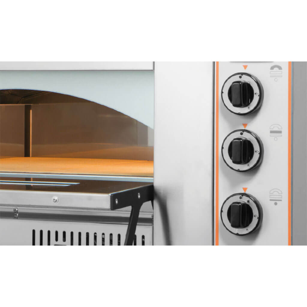 Peći za pečenje pica renomiranog italijanskog proizvođača Resto Italia iz linije TG predstavlju modularne gasne pećnice idealne za pečenje pice. Komora za pečenje je visine 15.5cm.