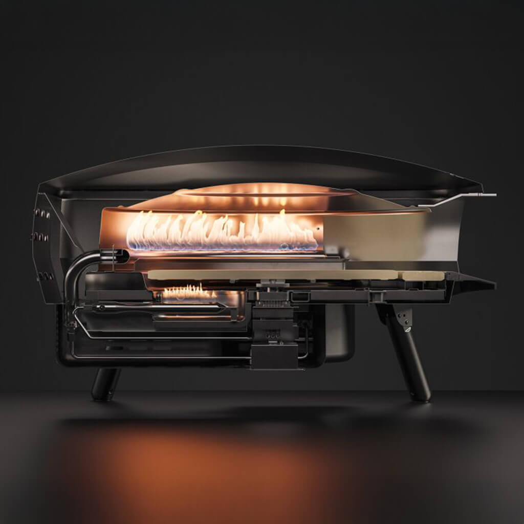 Opremljena snažnim gorionikom u obliku slova U i inovativnim pojačivačem gorionika, ova peć za picu postiže brzo predgrevanje. Rotirajući kamen obezbeđuje savršeno pečenu koricu svaki put, što je čini neophodnom za ljubitelje pice koji traže konzistentne rezultate.